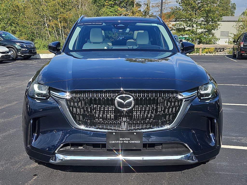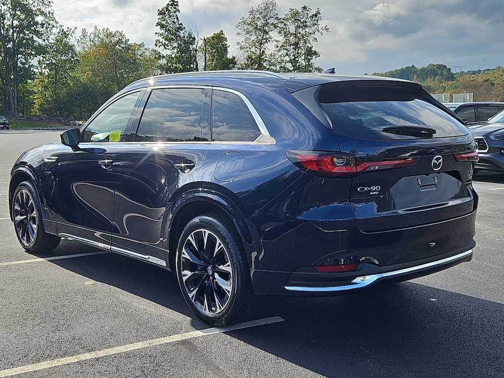 WHITE, NAPPA LEATHER SEAT TRIM W/QUILTING, DEEP CRYSTAL BLUE MICA, Wireless Phone Connectivity, Wheels: 21" x 9.5J Aluminum Alloy -inc: machine cut finish, Transmission w/Driver Selectable Mode, Towing Equipment -inc: Trailer Sway Control, Tires: 275/45R21, Steel Spare Wheel, Smart Device Remote Engine Start, Smart Device Integration. This Mazda CX-90 has a strong Intercooled Turbo Gas/Electric I-6 3.3 L/200 engine powering this Automatic transmission.