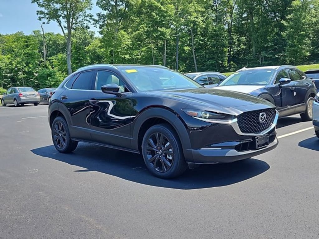 Scores 30 Highway MPG and 22 City MPG! This Mazda CX-30 boasts a Intercooled Turbo Regular Unleaded I-4 2.5 L/152 engine powering this Automatic transmission. WHITE W/BROWN, LEATHER SEAT TRIM, JET BLACK MICA, BLACK LUG NUTS & BLACK WHEEL LOCKS.